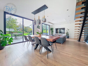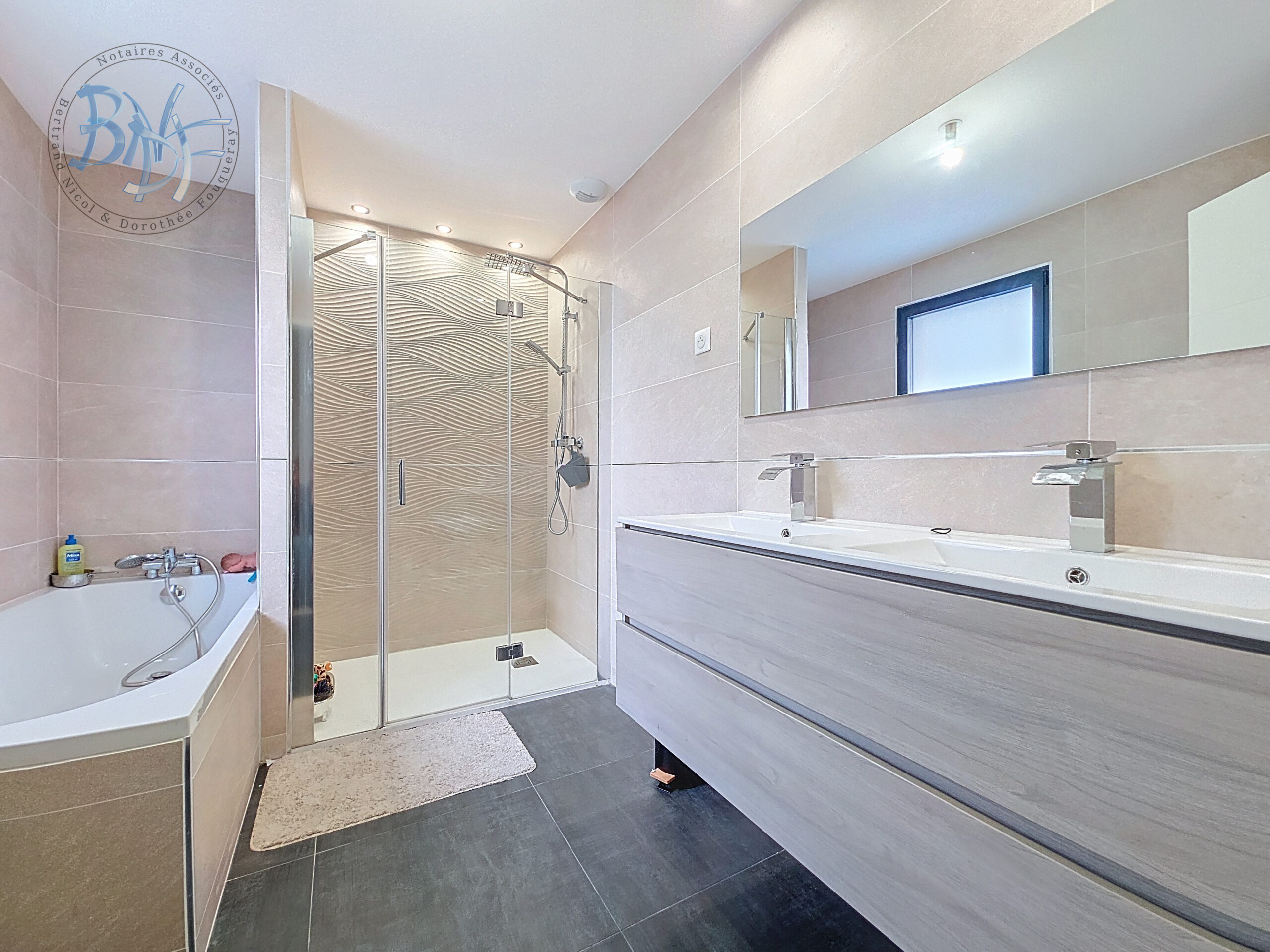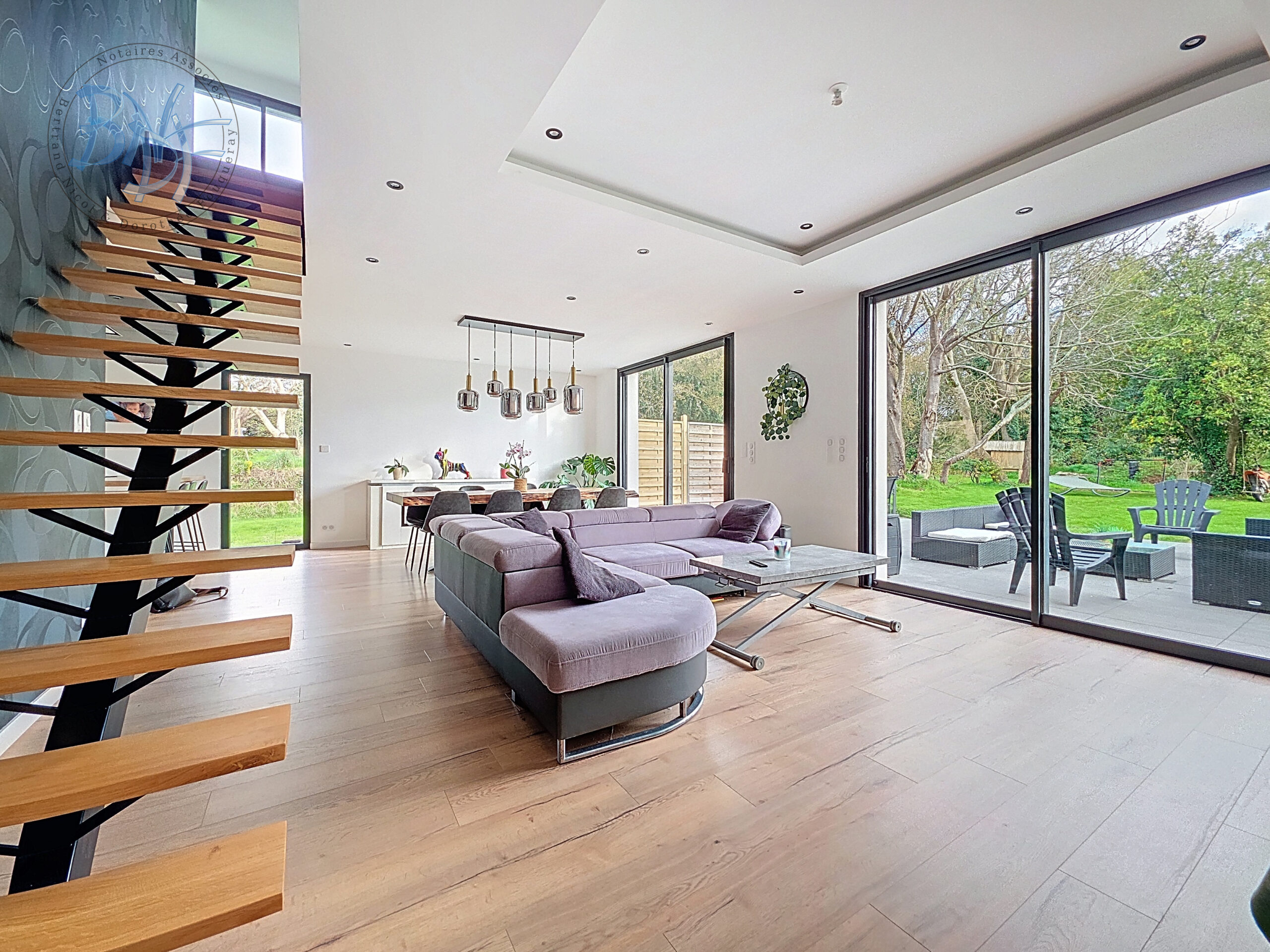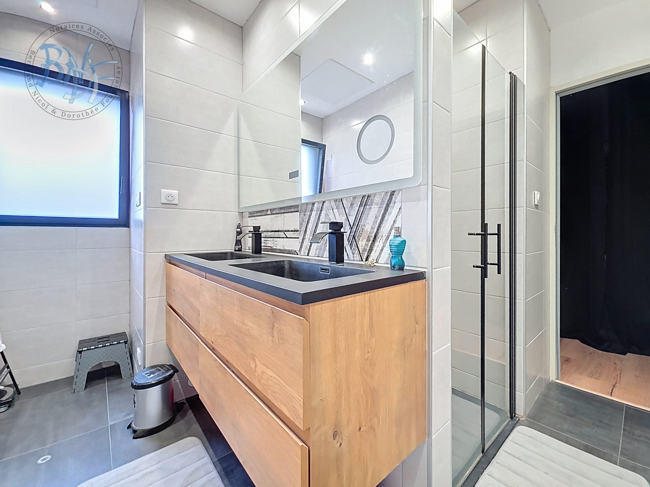 Construite en 2023 avec une attention particulière portée à la qualité et au confort, cette maison contemporaine d’une surface habitable de plus de 160 m² répond à l’ensemble des dernières normes thermiques. Rez-de-chaussée : Dès l’entrée, vous découvrirez une vaste pièce de vie d’environ 40 m², baignée de lumière et offrant un bel espace salon-salle à manger. Elle s’ouvre d’un côté sur une cuisine aménagée et entièrement équipée, et de l’autre sur une spacieuse terrasse de 100 m² orientée plein sud. Ce niveau comprend également une chambre avec espace sport (prévu pour hammam), un bureau, un dressing, une salle d’eau et des WC indépendants. Étage : Un palier dessert trois chambres, dont une suite bénéficiant de sa propre salle de bains. Une deuxième salle de bains, équipée d’une douche et d’une baignoire, ainsi que des WC indépendants complètent cet étage. Prestations et équipements :Volets roulants électriques, Pompe à chaleur, Chauffage au sol au rez-de-chaussée, Assainissement individuel conforme. Édifiée sur une de 1 114 m², la propriété offre un agréable jardin paysager exposé sud, prolongeant harmonieusement la terrasse. Sur la façade nord, une vaste cour permet de stationner aisément plusieurs véhicules.
